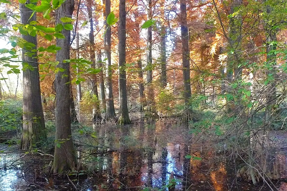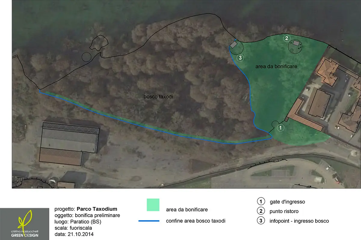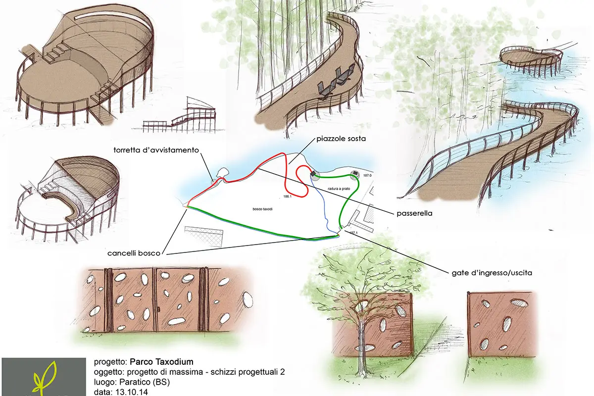 Progetto preliminare per il recupero di un bosco di Taxodium distichum cresciuto in un’area abbandonata sulle rive del fiume Oglio, all’imbocco del lago di Iseo. Un luogo pieno di fascino e di magia, meritevole di essere scoperto attraverso passerelle rialzate che ne ricalcano il periplo, ponendo tuttavia grande attenzione e rispetto al particolare contesto naturalistico.