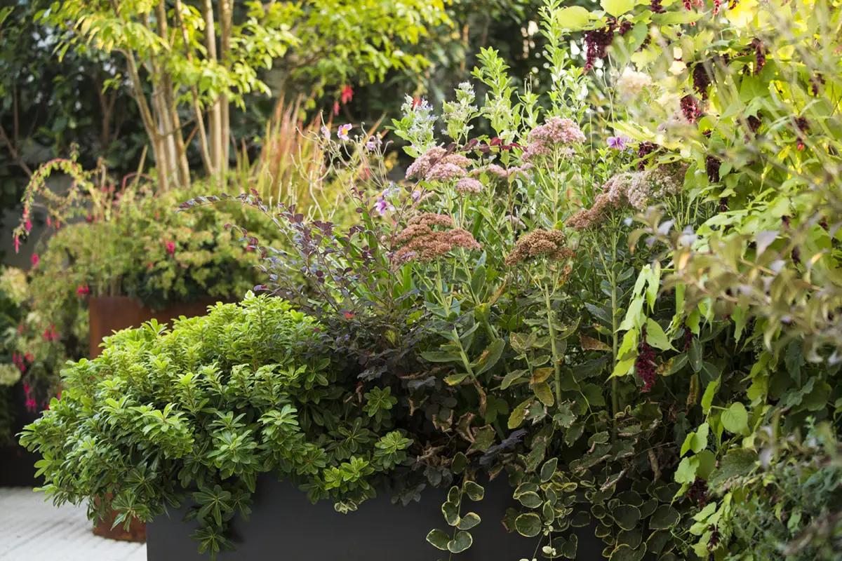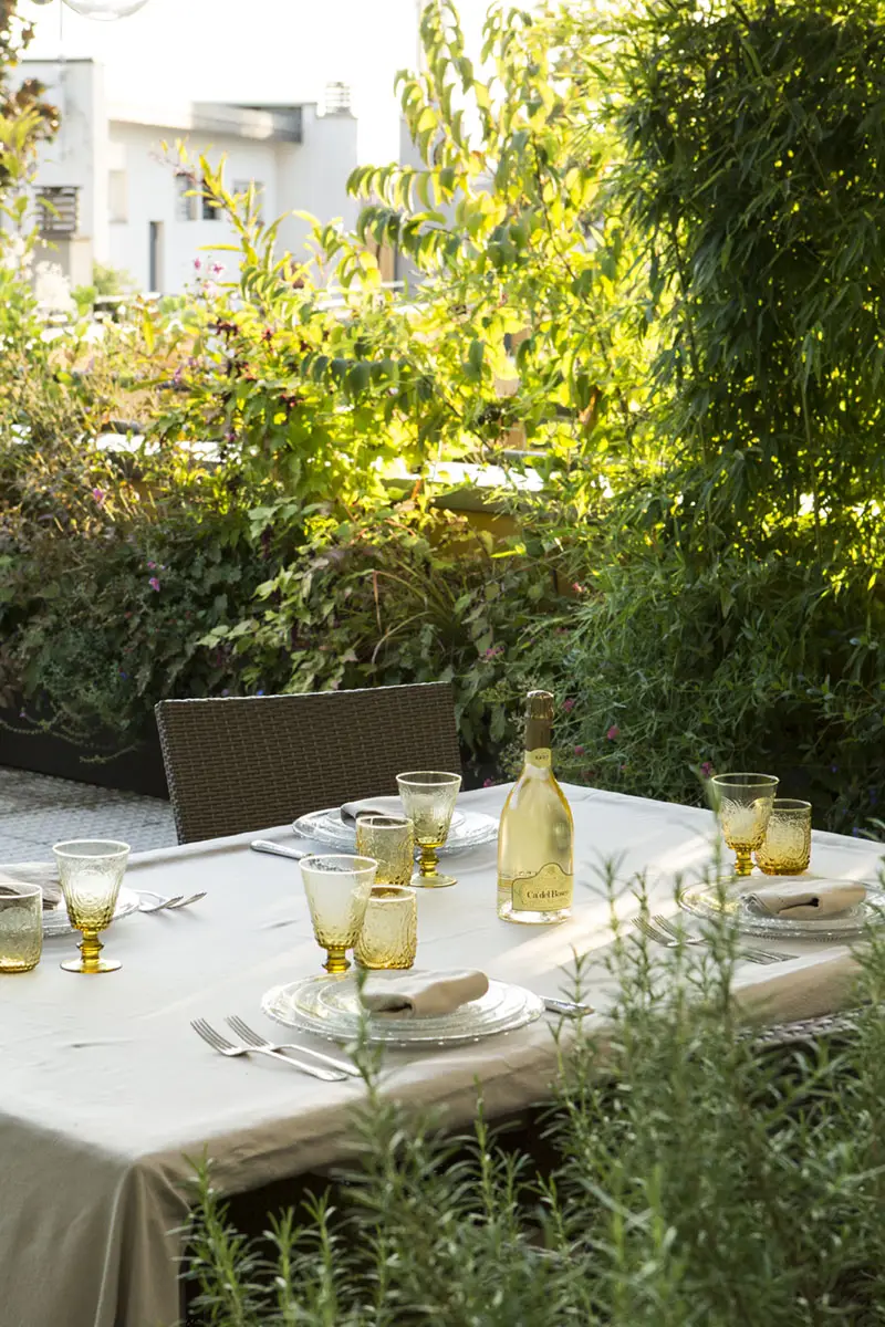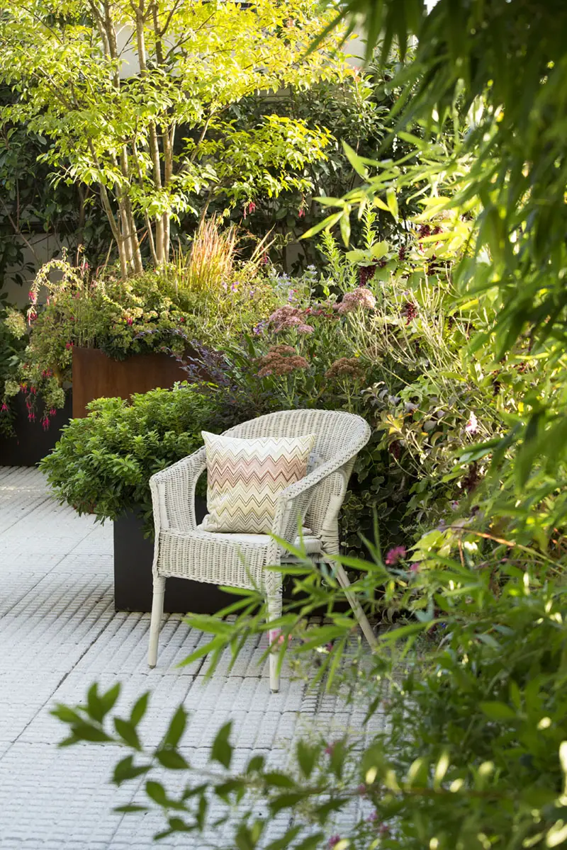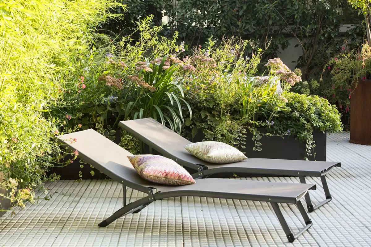 Colori decisi, un tripudio di piante in cui predominano i toni porpora e fucsia, stratagemmi strutturali invisibili ma efficaci, hanno consentito di recuperare quanto già esistente e di contenere i costi di realizzazione per un terrazzo privato di una casa in affitto