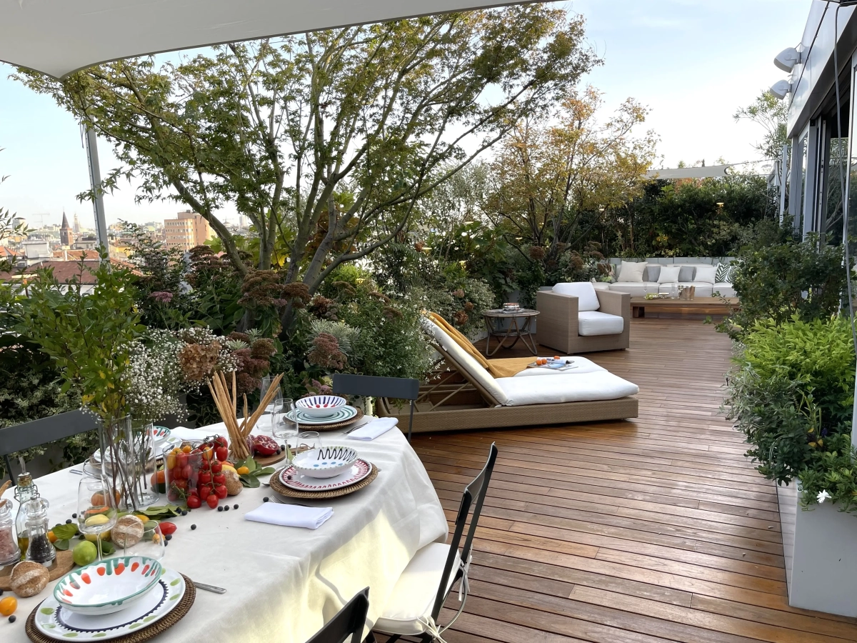 Un grande terrazzo milanese, situato all’ultimo piano di un palazzo contemporaneo, ripensato e rinnovato in occasione di lavori strutturali improcrastinabili, che hanno fornito l’opportunità di reinterpretare gli spazi per adeguarsi alle nuove esigenze della famiglia.