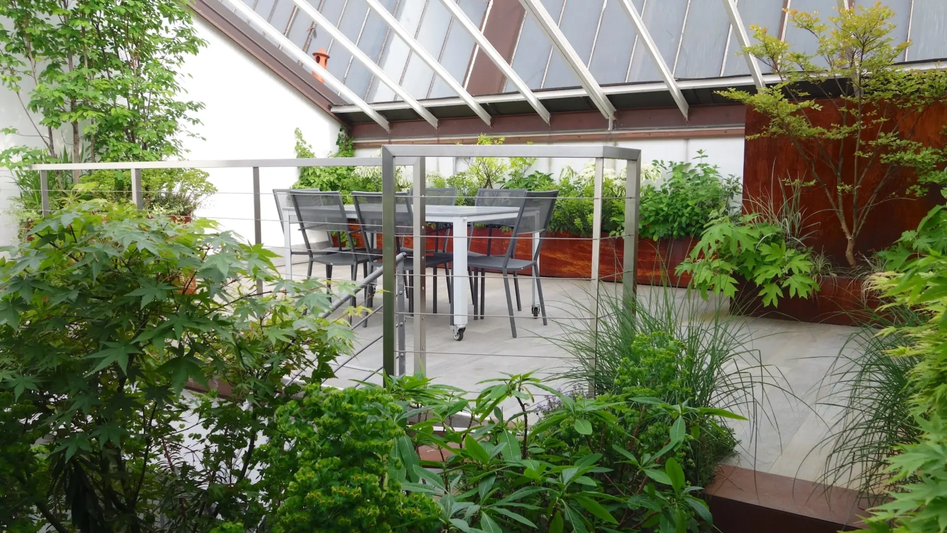 Ricavato sul tetto di un magazzino adiacente ad un loft in una ex fabbrica, questo terrazzo è non solo da godere