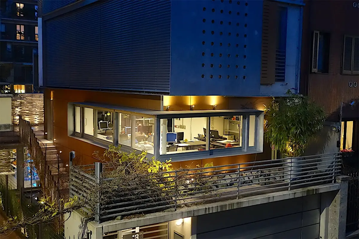 Un fabbricato contemporaneo unisce l’architettura high-tech ed ecosostenibile ad una vegetazione morbida, libera ed a bassa manutenzione